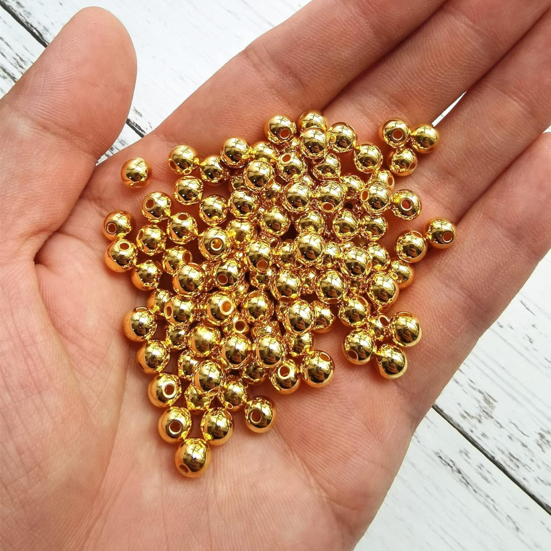 Featuring a rich golden metallic coating, these beads offer a brilliant shine and premium look. The smooth, polished surface ensures a flawless, high-end finish, making them perfect for fashion accessories, ethnic embroidery, home décor, and various artistic creations.